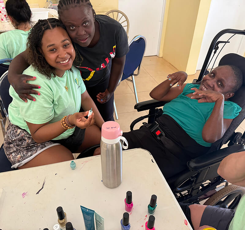 Students also participate in fundraising efforts and gather supplies to share with the residents and caregivers of Mustard Seed. Students develop and participate in many fun activities with the residents, from bingo and pedicures to jewelry making, gardening, soccer, singing, dancing, and our favorite: the Talent Show!